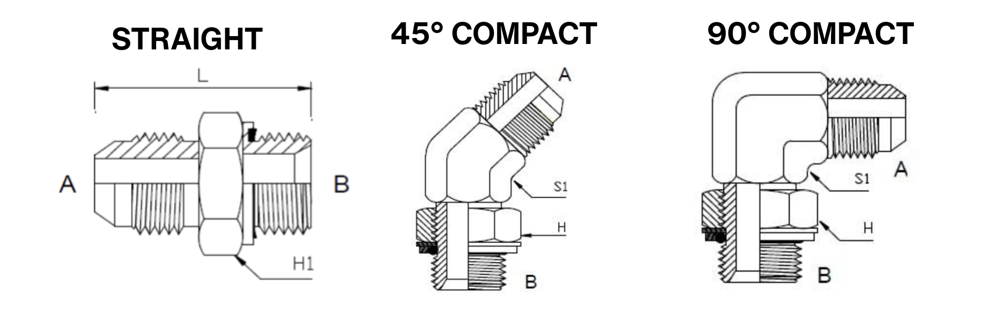 • BPM-JIM-90C-0812 – Adaptor - (08) 1/2" BSP Parallel Male x (12) 3/4" JIC Male - 90° Compact – Qty 6