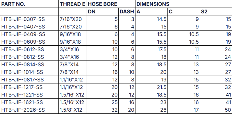 | 3/4 – 16 UNF | -12 | 19,1 | 0.75 | 17,5 | 0.69 | 1/2 |