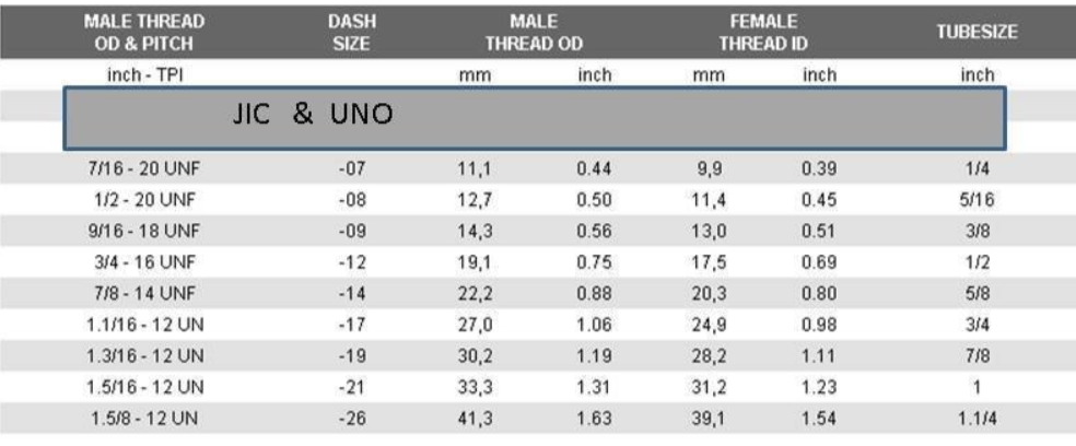 JIC / UNO Thread Chart